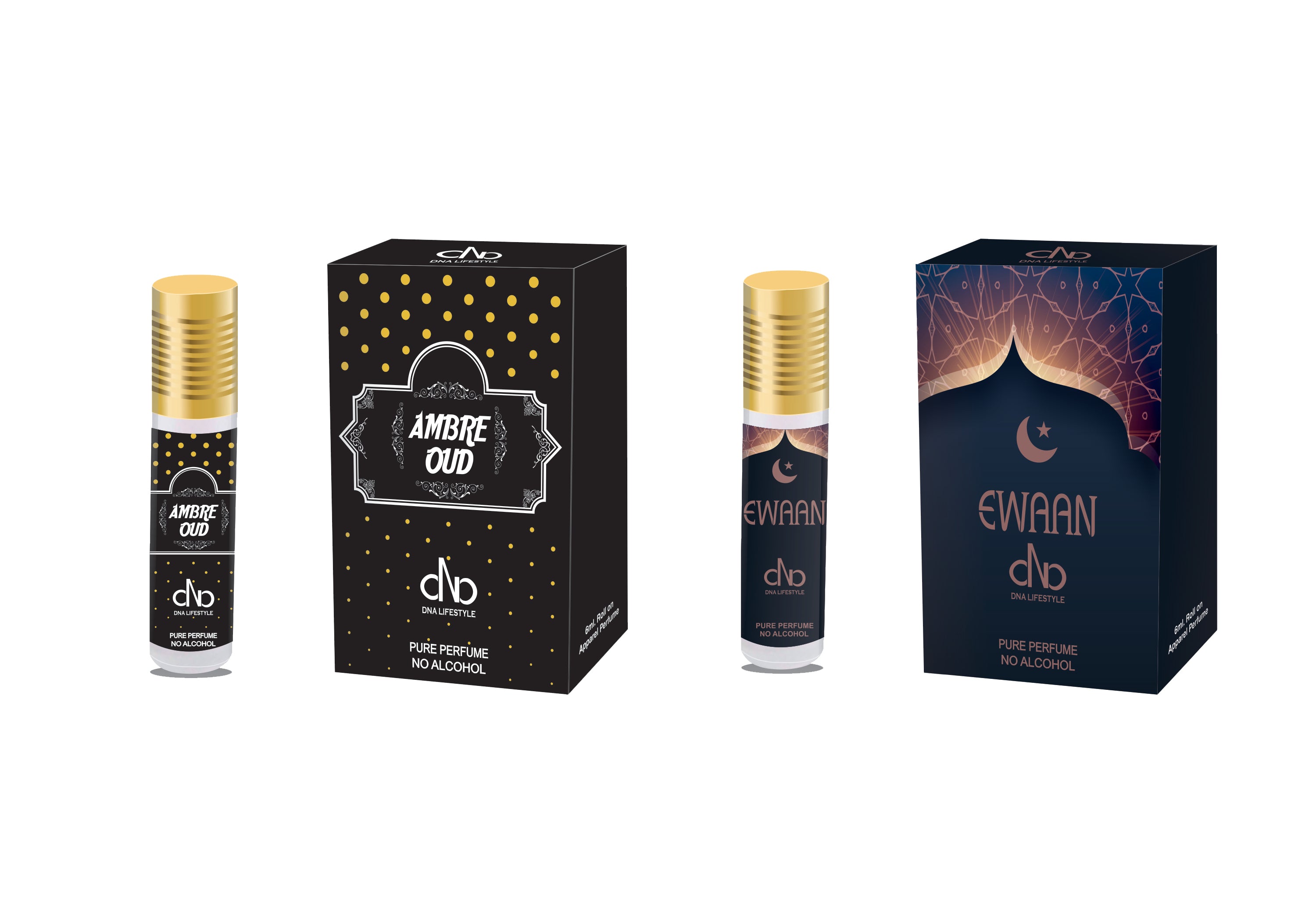 DNA LIFESTYLE Ambre Oud and Ewaan, Dubai Series, Roll-on Pure Perfume, 6ml - Pack of 2